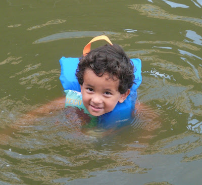 Brothers, sporting special hair-do's for a party, and loving each other. See the light spot on Ahren's head? That's where the scab fell off. Lovely.